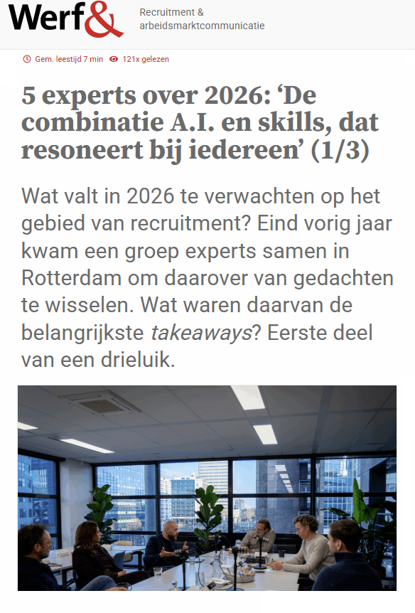 In dit rondetafelgesprek bij Werf& over recruitment in 2026 viel voor mij één ding extra op. De discussie gaat allang niet meer over óf AI en skills belangrijk zijn.